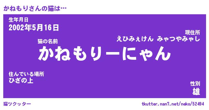 | 意味不明あだ名 | 『ペロリンかねもり』『永久保存かねもり』 |