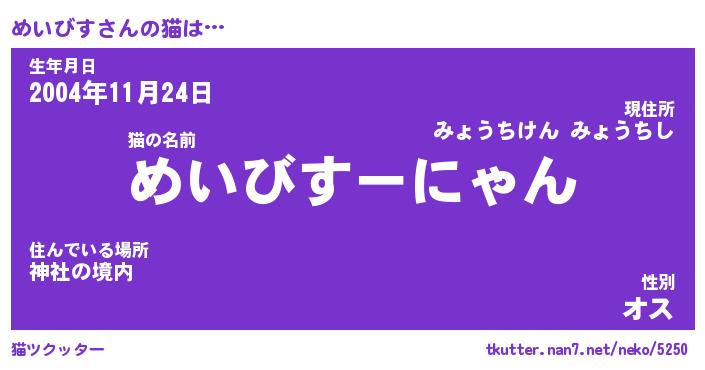 | 意味不明あだ名 | 『ペロリンめいびす』『永久保存めいびす』 |