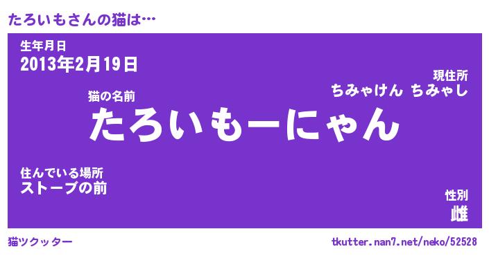 | 意味不明あだ名 | 『ペロリンたろいも』『永久保存たろいも』 |