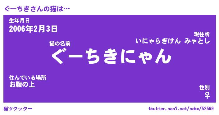 | 意味不明あだ名 | 『ペロリンぐーちき』『永久保存ぐーちき』 |