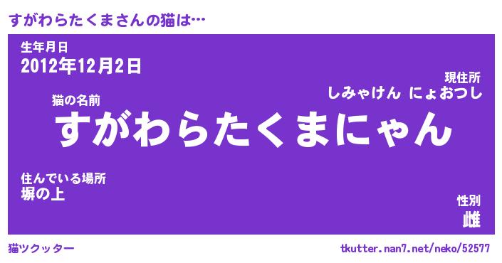 | 男性向けラノベタイトル風あだ名 | 『すがわらたくまの憂鬱』 |