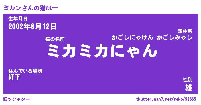 | ファンタジー風あだ名 | 『ミカフェル』『エターナルミカンー』 |