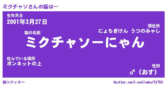 | 肩書あだ名 | 『ミクチャソ社長』『ミクチャソ国家主席』 |