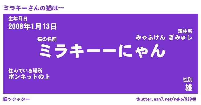| 意味不明あだ名 | 『ペロリンミラキー』『永久保存ミラキー』 |