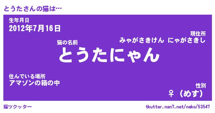 | 意味不明あだ名 | 『ペロリンとうた』『とうたフォーエバー』 |