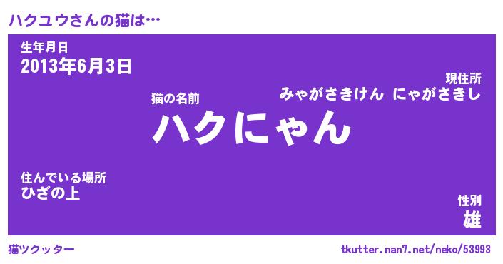 | ファンタジー風あだ名 | 『ハクフェル』『エターナルハクユウー』 |