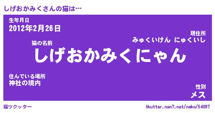 | ヒーロー風カッコイイあだ名 | 『スーパーシゲオカミク』『天弓騎士シゲ』 |