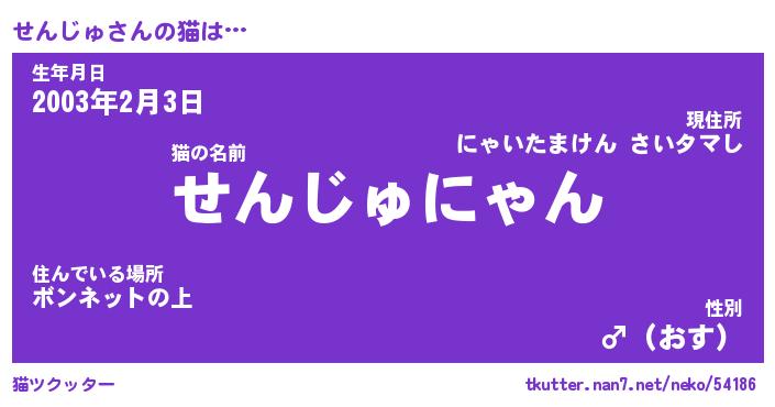 | 意味不明あだ名 | 『ペロリンせんじゅ』『永久保存せんじゅ』 |