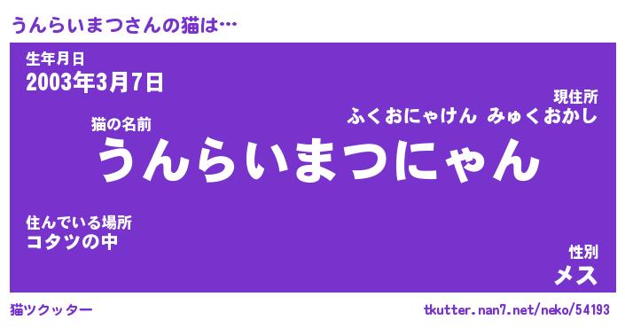 | 肩書あだ名 | 『うんらいまつCEO』『うんらいまつ担任』 |