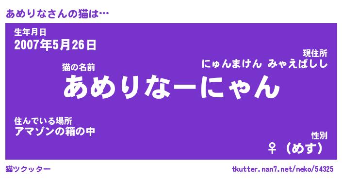 | 意味不明あだ名 | 『ペロリンあめりな』『永久保存あめりな』 |