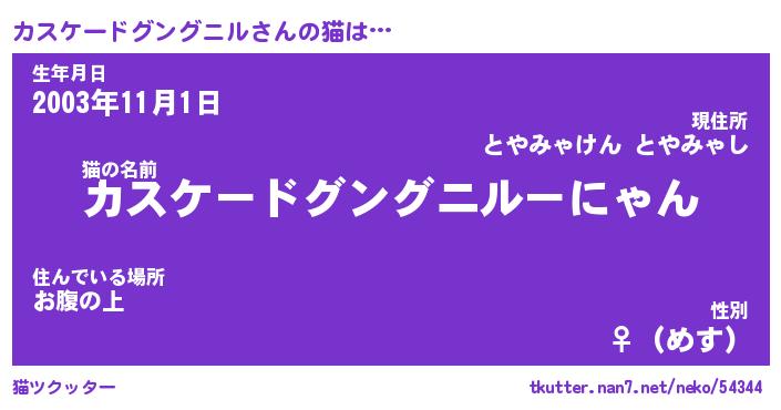 | 欧米人風あだ名 | 『マイケルカスケードグングニル』 |
