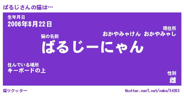| 意味不明あだ名 | 『ペロリンばるじ』『ばるじフォーエバー』 |