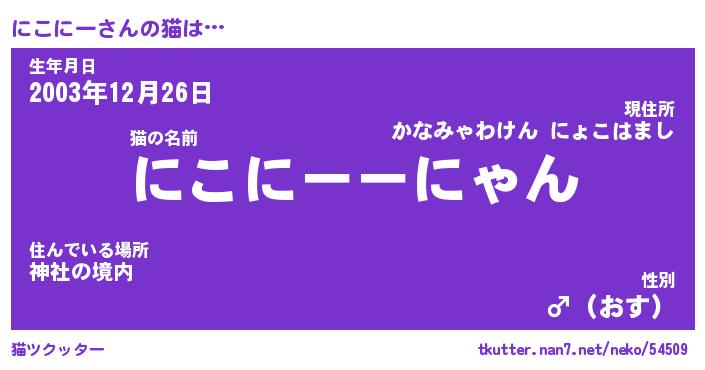 | ポケモン風あだ名 | 『ニコチュウ』『ニコニダネ』 |