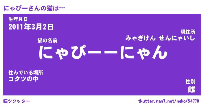 | 意味不明あだ名 | 『ペロリンにゃびー』『永久保存にゃびー』 |