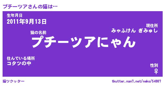 | 男性向けラノベタイトル風あだ名 | 『プチーツアの憂鬱』 |