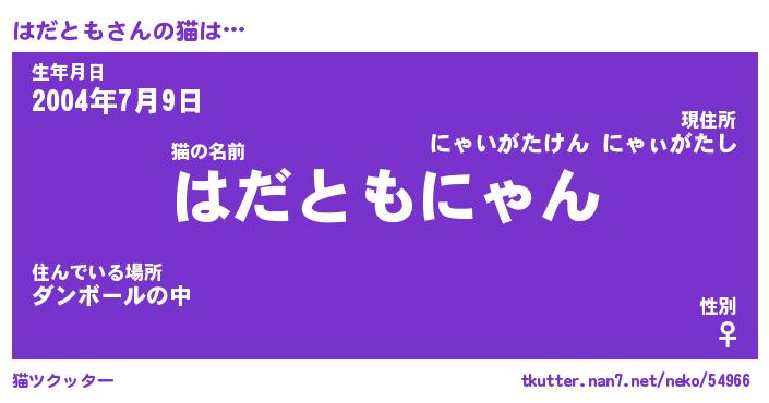 | ポケモン風あだ名 | 『ハダチュウ』『ハダトダネ』 |