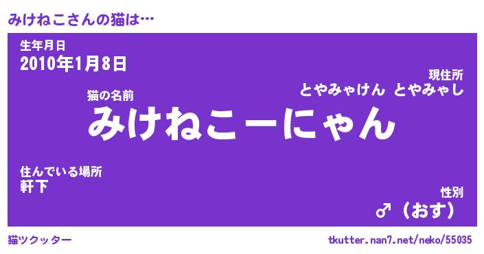| 意味不明あだ名 | 『ペロリンみけねこ』『永久保存みけねこ』 |