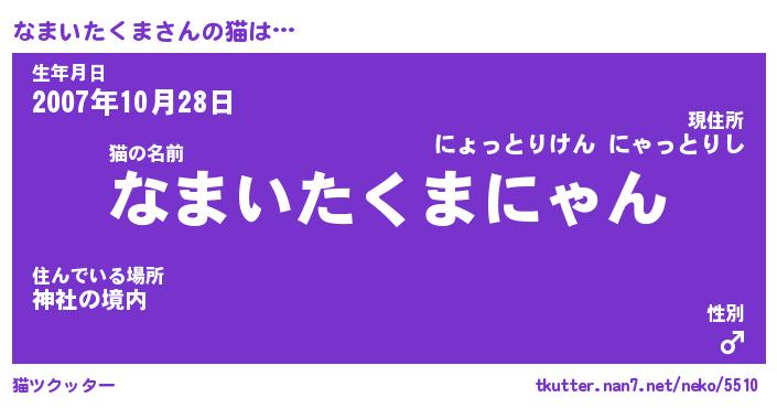 | ヒーロー風カッコイイあだ名 | 『スーパーナマイタクマ』『暗黒騎士ナマ』 |