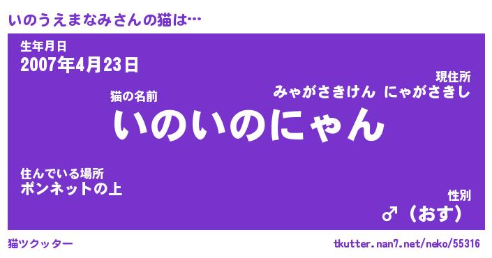 | 2回繰り返すあだ名 | 『いのいの』『いいのの』『ぬれぬれ』 |