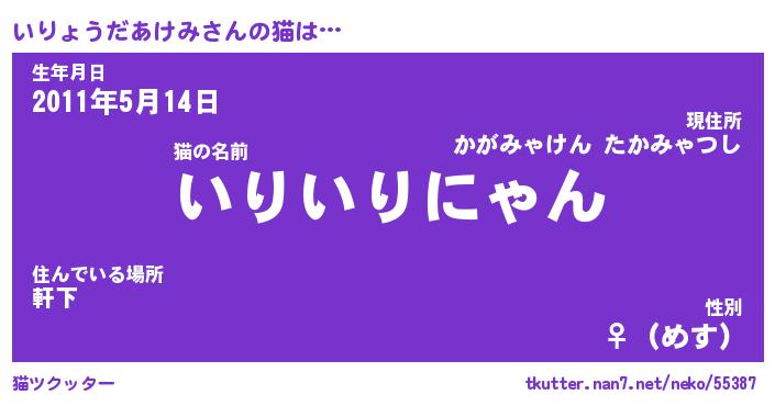 | 2回繰り返すあだ名 | 『いりいり』『いいりり』『うねうね』 |