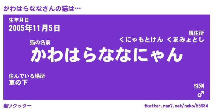 | 肩書あだ名 | 『かわはらなな社長』『かわはらなな班長』 |