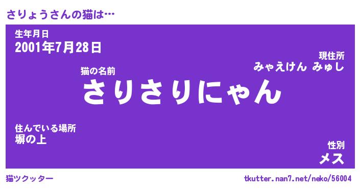 | 生年月日? …「くろねこ」 | 8月01日 10:16 |