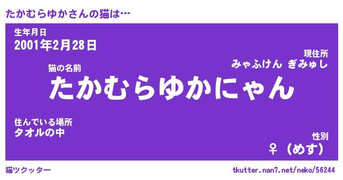 | 恥ずかしいあだ名 | 『プリティーたかむらゆか』『たかっちょ』 |
