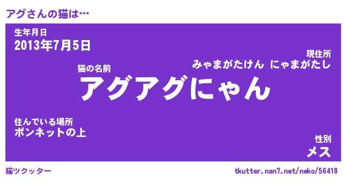 | ポケモン風あだ名 | 『アグチュウ』『アグダネ』『ヒアグ』 |