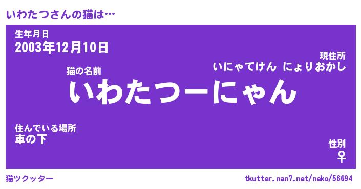 | ツイッター | いわたつさんのツイッターID『fukuyoka_nyan』 |