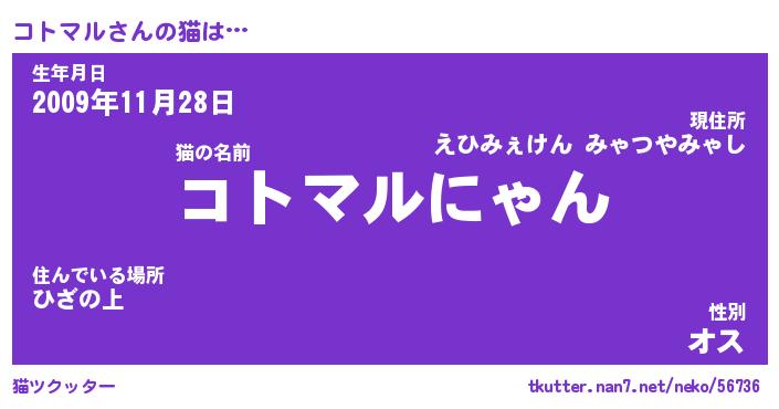 | 男性向けラノベタイトル風あだ名 | 『コトマルの憂鬱』 |