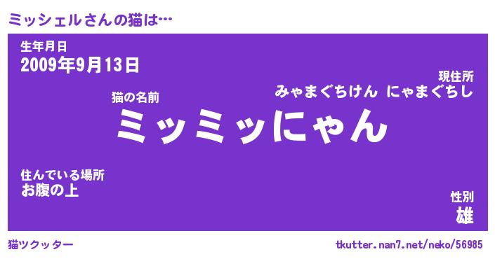 | ファンタジー風あだ名 | 『ミッフェル』『エターナルミッシェルー』 |