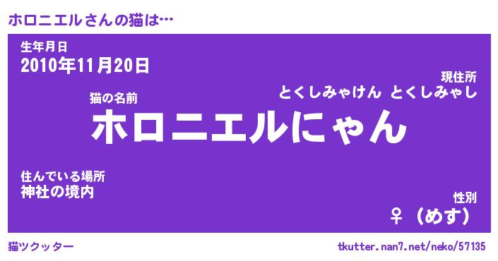| 女子向けラノベタイトル風あだ名 | 『(仮)ホロニエルのやんごとなき事情』 |