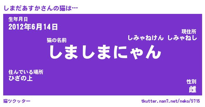| ファンタジー風あだ名 | 『シマフェル』『ファントムシマス』 |