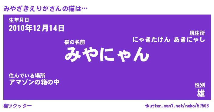 | ヘコむあだ名 | 『みやにゅー』『酢こんぶ』『みやお』 |