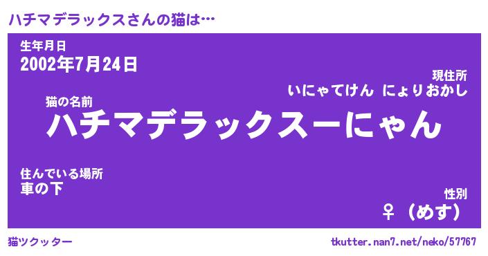 | 自動車の名前っぽいあだ名 | 『ハチティマ』『ハクア』『デミハ』 |