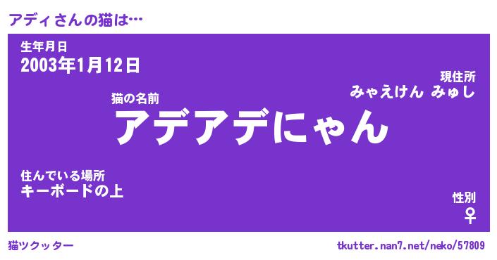 | ポケモン風あだ名 | 『アデチュウ』『アディダネ』 |