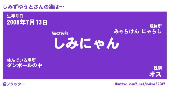 | ヘコむあだ名 | 『しみにゅー』『なまこ酢』『しみお』 |