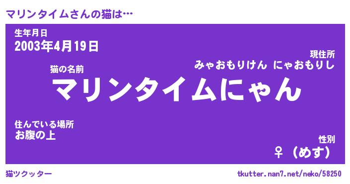 | 男性向けラノベタイトル風あだ名 | 『マリンタイムの憂鬱』 |