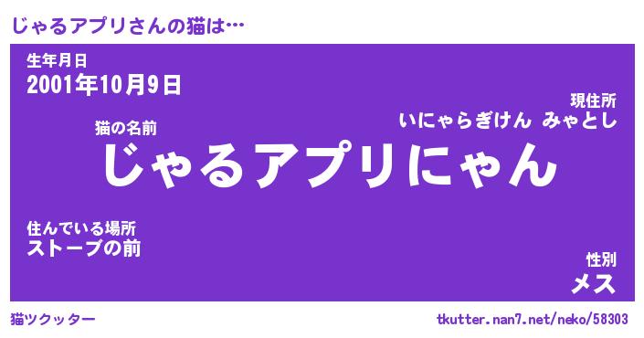 | 女子向けラノベタイトル風あだ名 | 『(仮)じゃるアプリのやんごとなき事情』 |