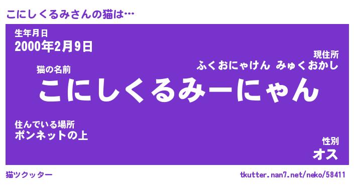| ヘコむあだ名 | 『こににー』『つくし』『こに太郎』 |
