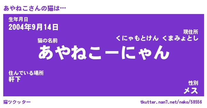 | 欧米人風あだ名 | 『マイケルあやねこ』『ウサインあやねこ』 |