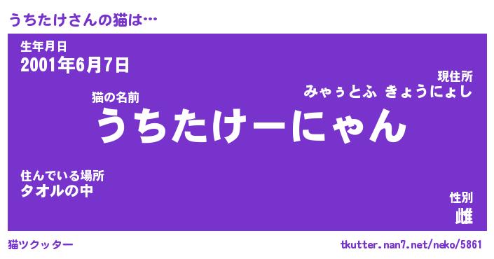 | 意味不明あだ名 | 『ペロリンうちたけ』『永久保存うちたけ』 |
