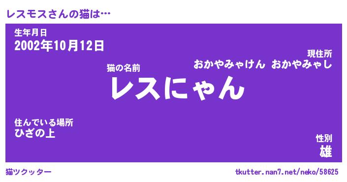 | 意味不明あだ名 | 『ペロリンレスモス』『永久保存レスモス』 |