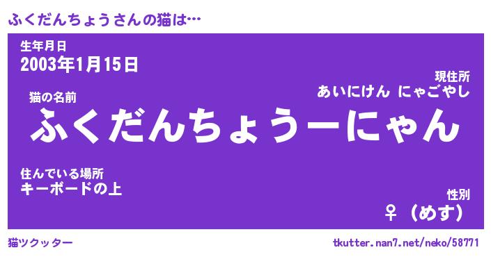 | ポケモン風あだ名 | 『フクチュウ』『フクダダネ』 |