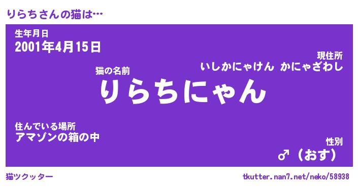 | 生年月日? …「くろねこ」 | 8月01日 10:16 |