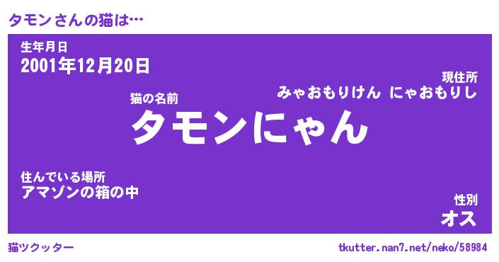 | 意味不明あだ名 | 『ペロリンタモン』『タモンフォーエバー』 |