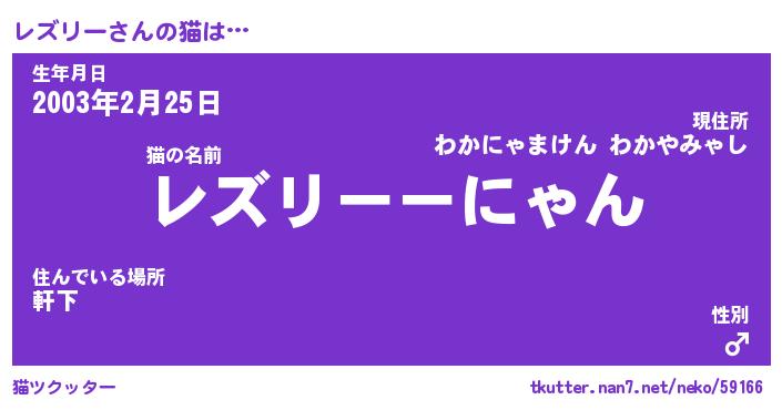 | 意味不明あだ名 | 『ペロリンレズリー』『永久保存レズリー』 |