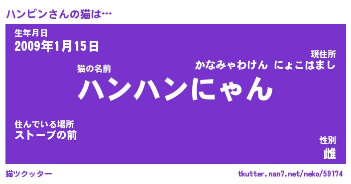 | 意味不明あだ名 | 『ペロリンハンビン』『永久保存ハンビン』 |