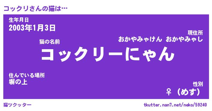| 生年月日? …「くろねこ」 | 8月01日 10:16 |