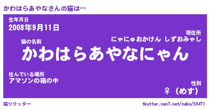 | 男性向けラノベタイトル風あだ名 | 『かわはらあやなの憂鬱』 |